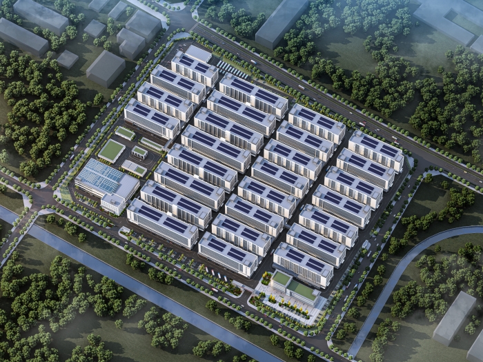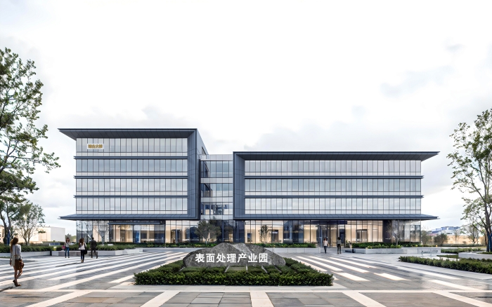 本項(xiàng)目整個(gè)園區(qū)細(xì)化布置生產(chǎn)區(qū)、環(huán)保服務(wù)區(qū)、動(dòng)力區(qū)、倉(cāng)儲(chǔ)區(qū)、綜合服務(wù)區(qū)5大功能區(qū),通過(guò)南北向主線及東西向發(fā)展次軸,圍繞環(huán)保服務(wù)區(qū)拓展,布置14棟表面處理廠房、1棟綜合服務(wù)大樓、1棟綜合站房、3棟倉(cāng)庫(kù)、1棟廢水處理中心及守衛(wèi)室、初期雨水收集池、圍墻、架空管廊、槽罐區(qū)、35kV變電站等配套附屬構(gòu)筑物,形成完整的表面處理功能鏈和互動(dòng)關(guān)系。